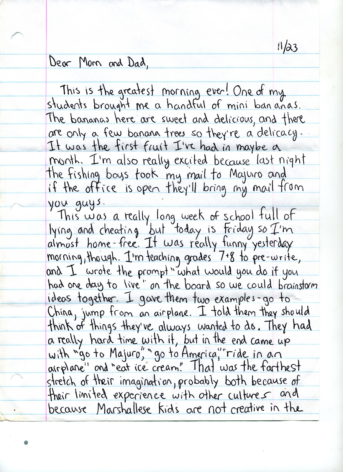 The stunning news of Uncle Ted's aneurism has floored us all. He has always been such a wonderful person - enhancing all of our lives. I always noticed the different perspective he always had for all the kids - his own grandkids as well as all the cousins. He was so interested in everything they did. For Boo, he was very interested in hearing about the children in the Marshall Islands - how they are different from US kids.